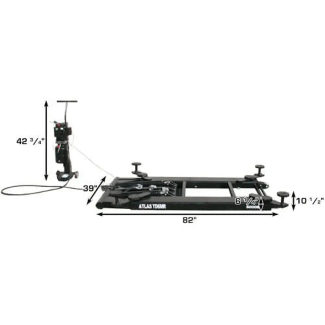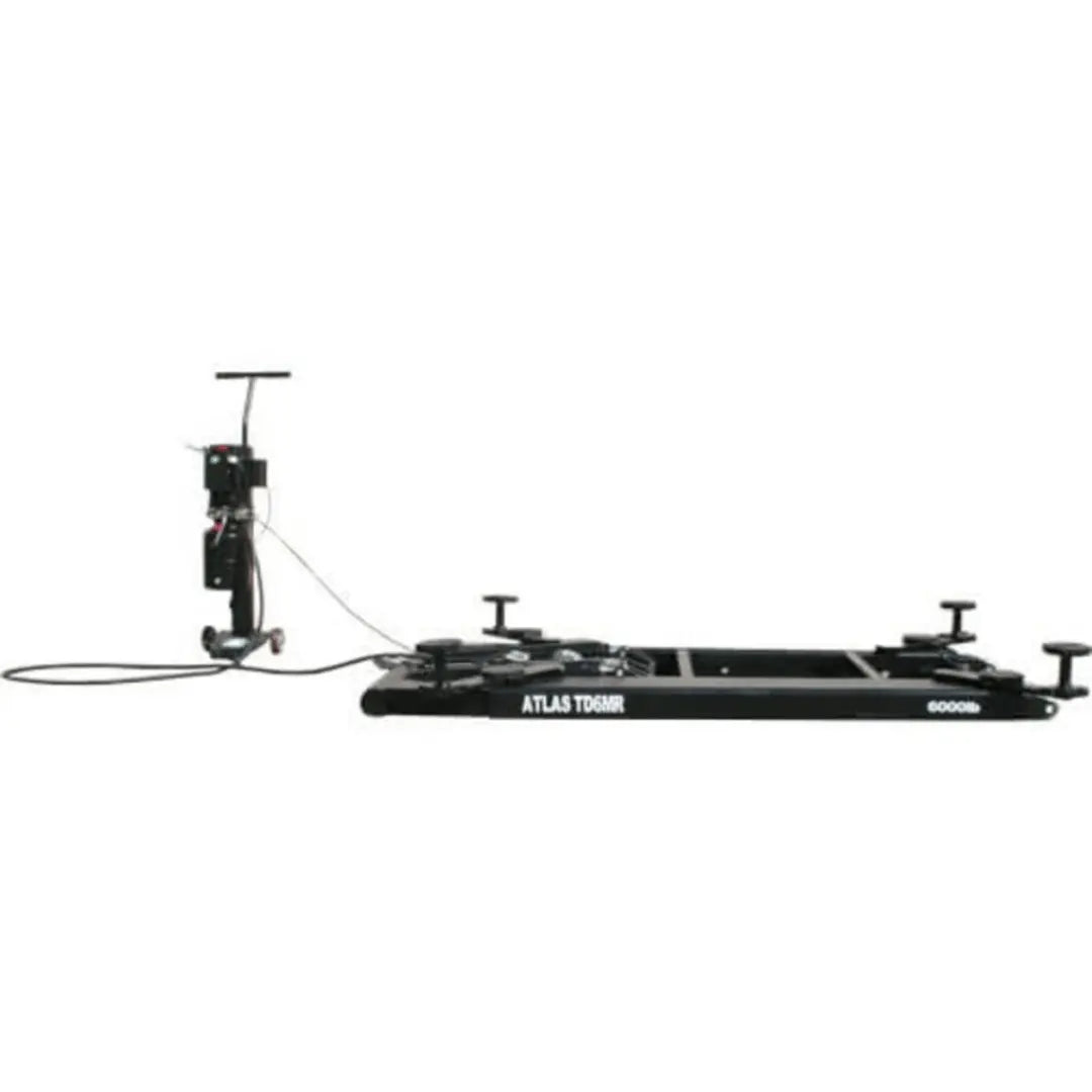 The Atlas® 6MR is a free standing 6,000 lb. capacity portable scissor lift. The 6MR is the perfect lift for body shops and wheel service specialists that need extra lifting height. This portable lift easily raises a 6,000 LB. car or truck to a comfortable working height. The unique platform design of the 6MR allows access to some areas on the underside of the car not easily accessible with other portable mid-rise lifts.