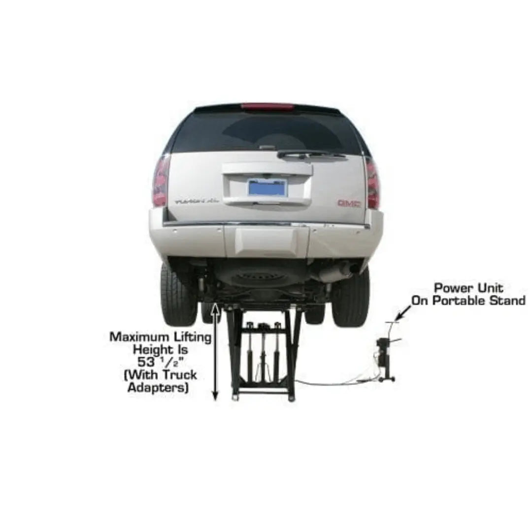 The large “foot print” of the Atlas® 6MR creates a steady platform for the raised vehicle with a lifting height of over 53” which remains rock solid at all safety lock positions.