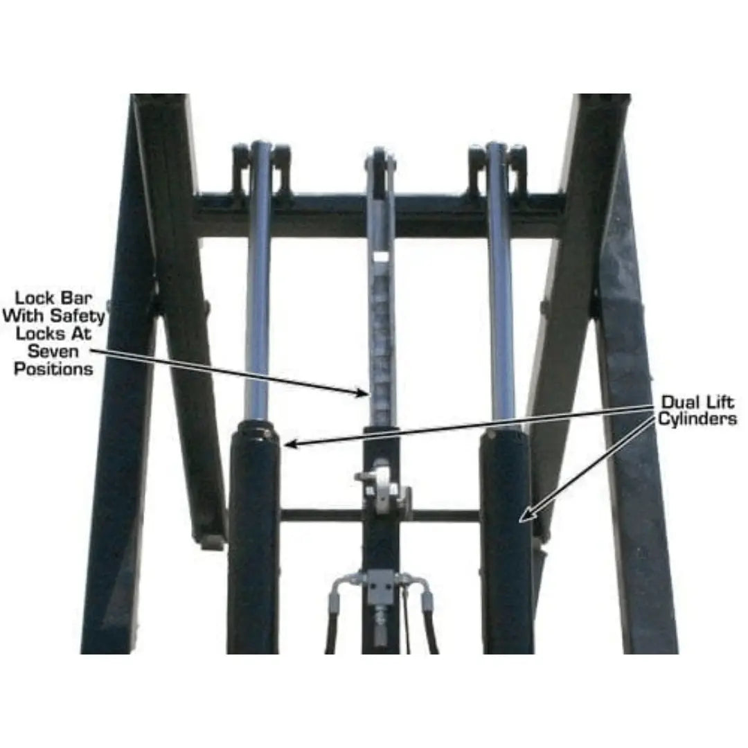 The dual power cylinders and the solid safety lock bar, with several different lock positions, make the Atlas® 6MR one of the most popular mid-rise lifts sold in the USA and Canada.