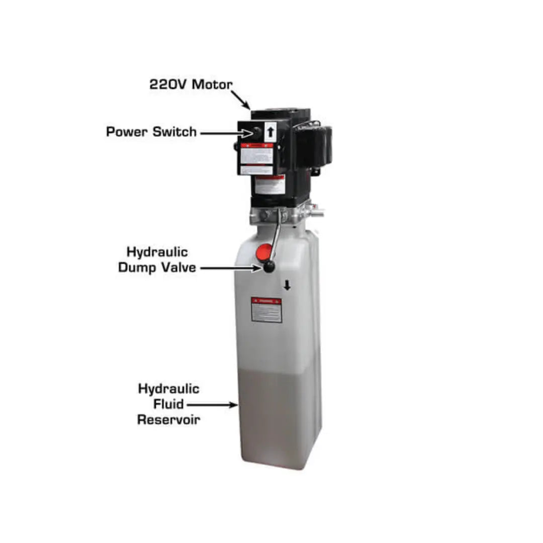 This product features an ALLY Hydraulic AL3000 Power Unit. This premium power unit is certified by MET Laboratories Inc. for electrical compliance in the United States and Canada. Extra heavy-duty armatures and more motor windings with increased silver metal included in the wires and connections create far less heat generation and allow ALLY Hydraulic power units to maintain constant torque through the lifting process. This power unit also carries an industry leading two-year limited warranty.