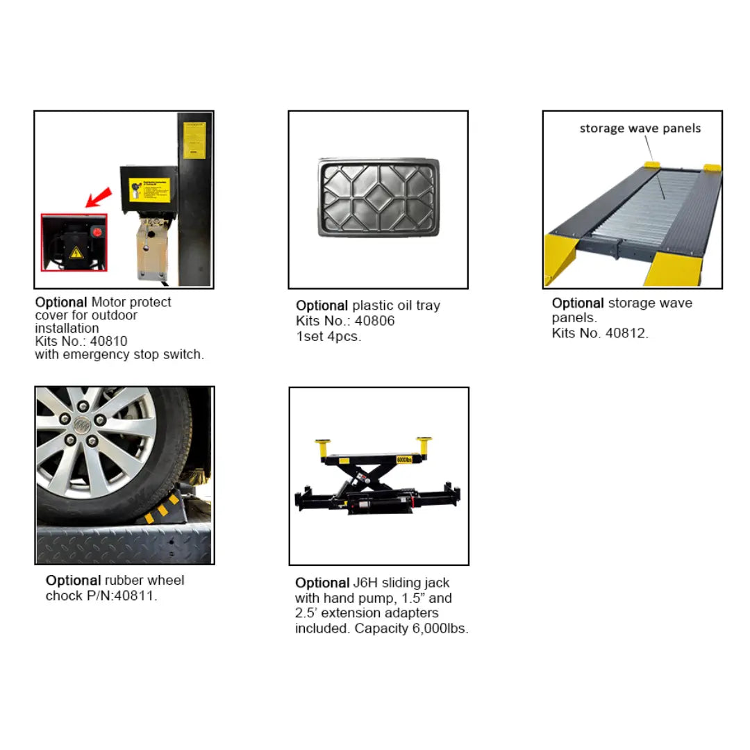 - Lifting capacity: 9,000 lbs, max. car weight:6,000 lbs.