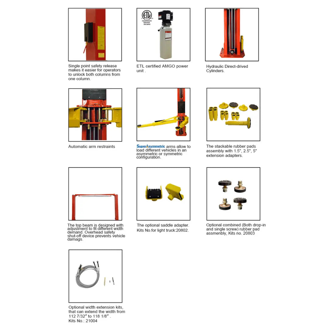 Discover the pinnacle of automotive lifting with the AMGO OHX-10 2 Post Car Lift, a marvel of engineering designed to meet the diverse needs of modern garages and automotive professionals. With its advanced features and robust construction, the OHX-10 sets a new standard for vehicle lifts, offering unparalleled performance, safety, and flexibility. Available exclusively through Mechanic Superstore, this lift is a testament to AMGO's commitment to quality and innovation in automotive service equipment.