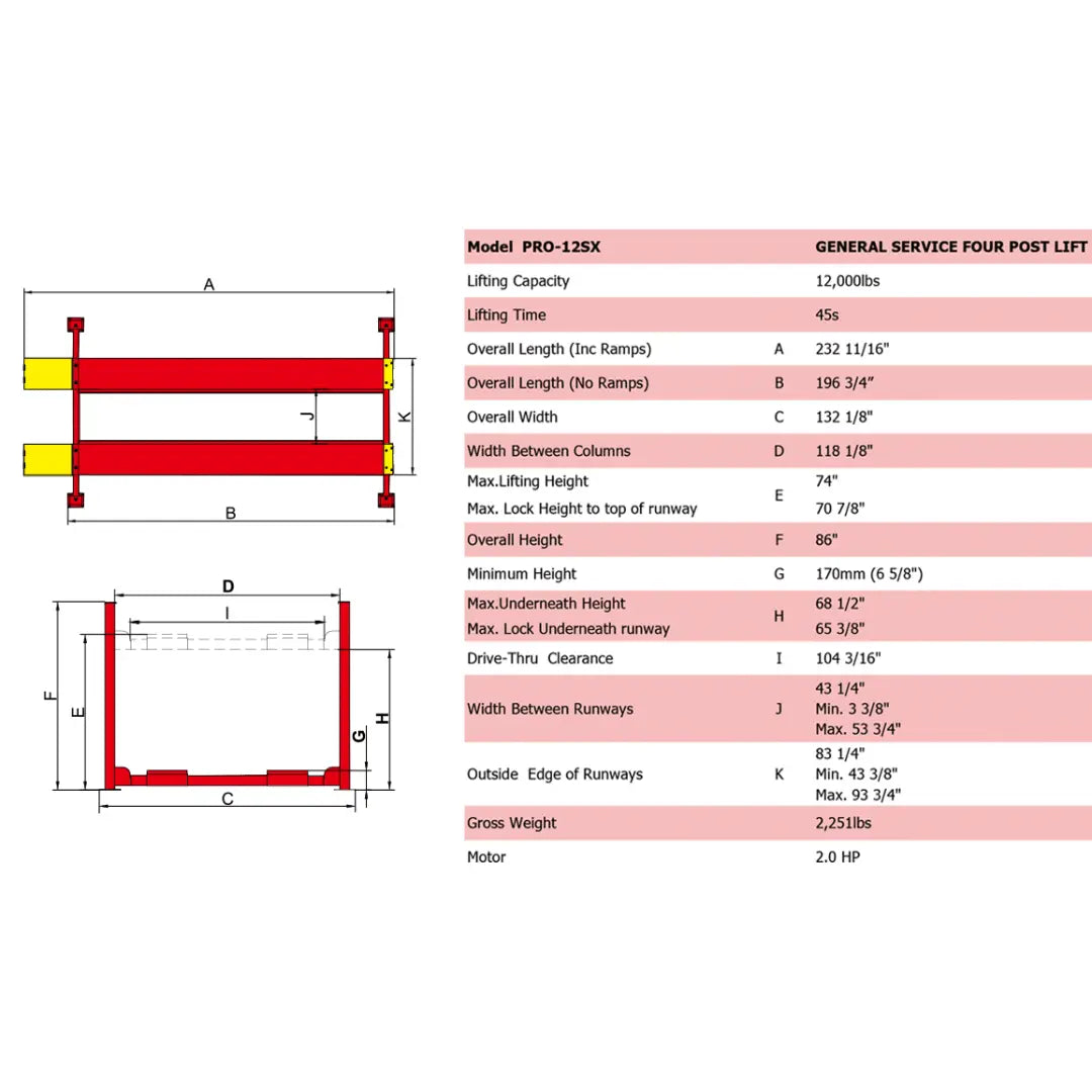 The PRO-12SX is a perfect car lift to work on regular everyday vehicles up to 12,000lbs. With air-released safety locks for convenient operation and consistent reliability, this lift will more than meet your everyday service needs.